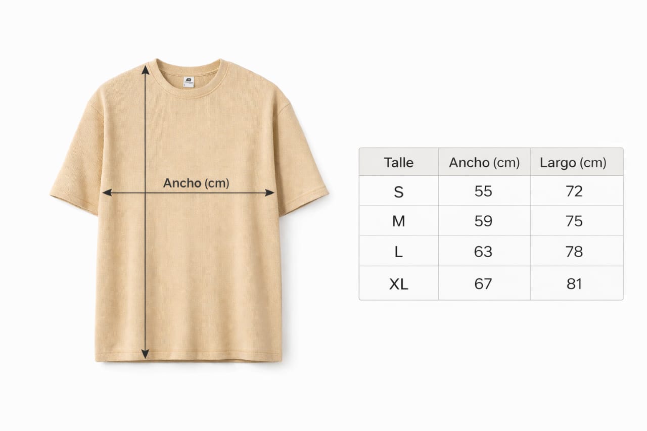 El color beige aporta un estilo limpio y versátil, fácil de combinar tanto con jeans como con pantalones cargo o joggers. Terminaciones prolijas y cuello reforzado que mantiene su forma lavado tras lavado.
